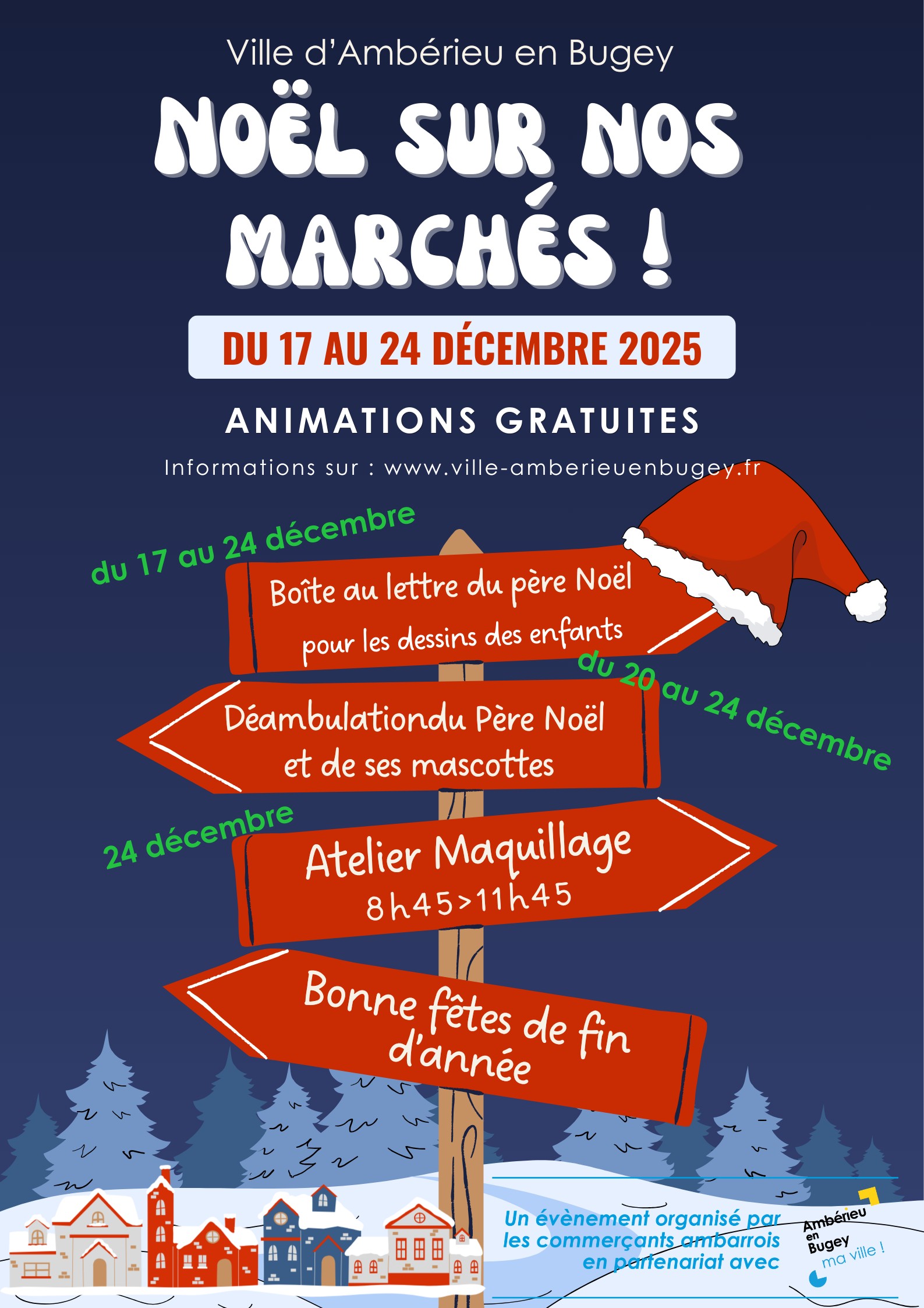 Venez profiter d'animations gratuites sur le marché d'Ambérieu-en-Bugey entre le 17 et le 24 décembre 2025 :