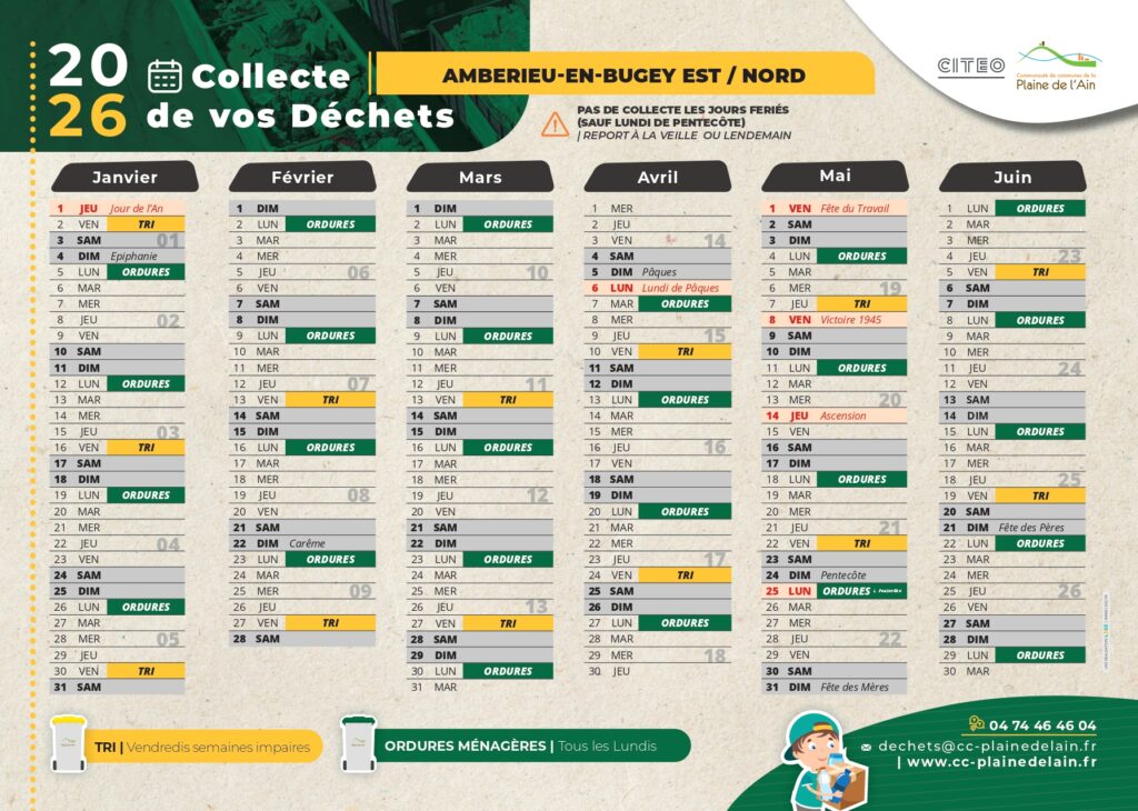 INFO CCPA – CALENDRIER DE COLLECTE 2026
