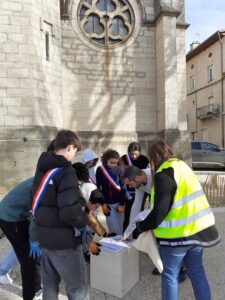 Mercredi 14 janvier 2026, dans le cadre des travaux d’aménagement de la place Robert Marcelpoil, une opération de plantations d’arbres et d’arbustes a été réalisée autour de l’église Saint-Symphorien, avec la participation du Conseil Municipal des Jeunes d’Ambérieu-en-Bugey et des équipes de la société Balland Paysages.