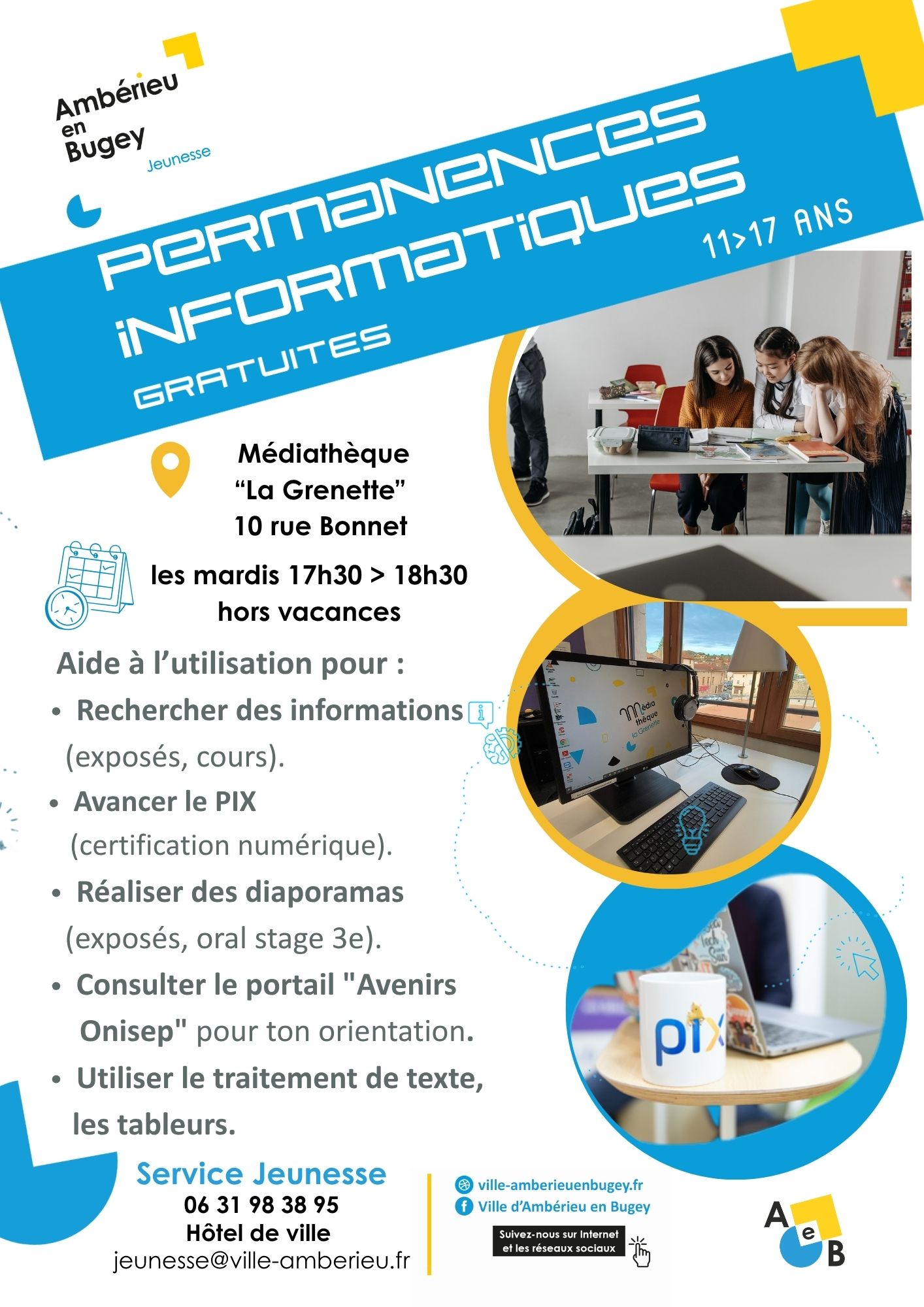La Ville d’Ambérieu-en-Bugey vous propose des permanences gratuites tous les mardis de 17h30 à 18h30, dans la salle informatique de la Médiathèque La Grenette !