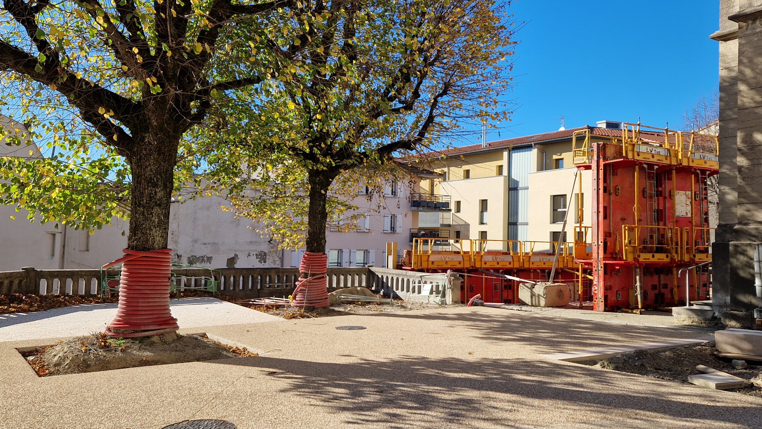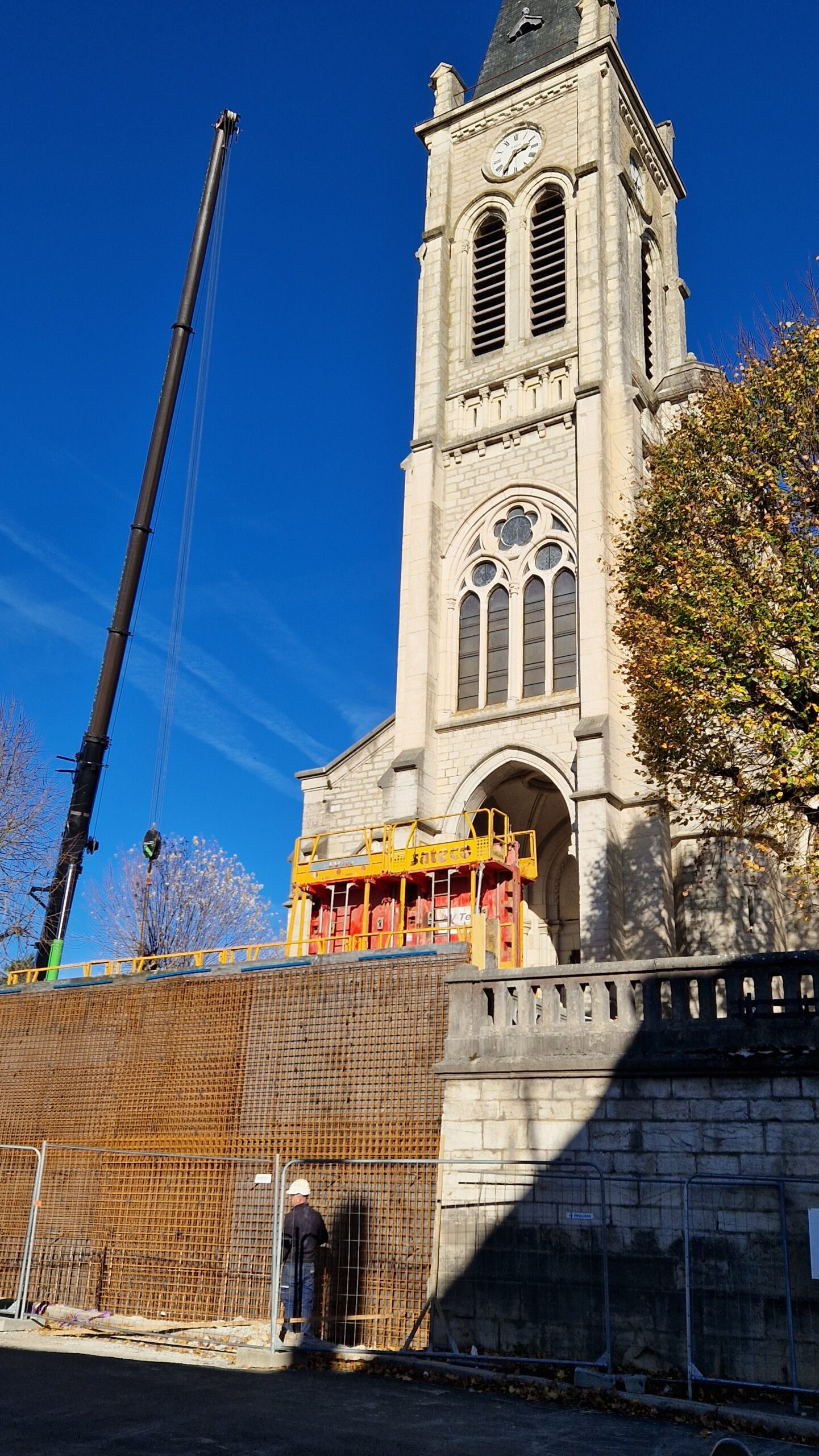 En parallèle, les murs de soutènement du parvis de l’église et le nouvel escalier y conduisant sont en cours de réalisation, dessinant ainsi progressivement les futurs accès et jardins qui entoureront l’église.