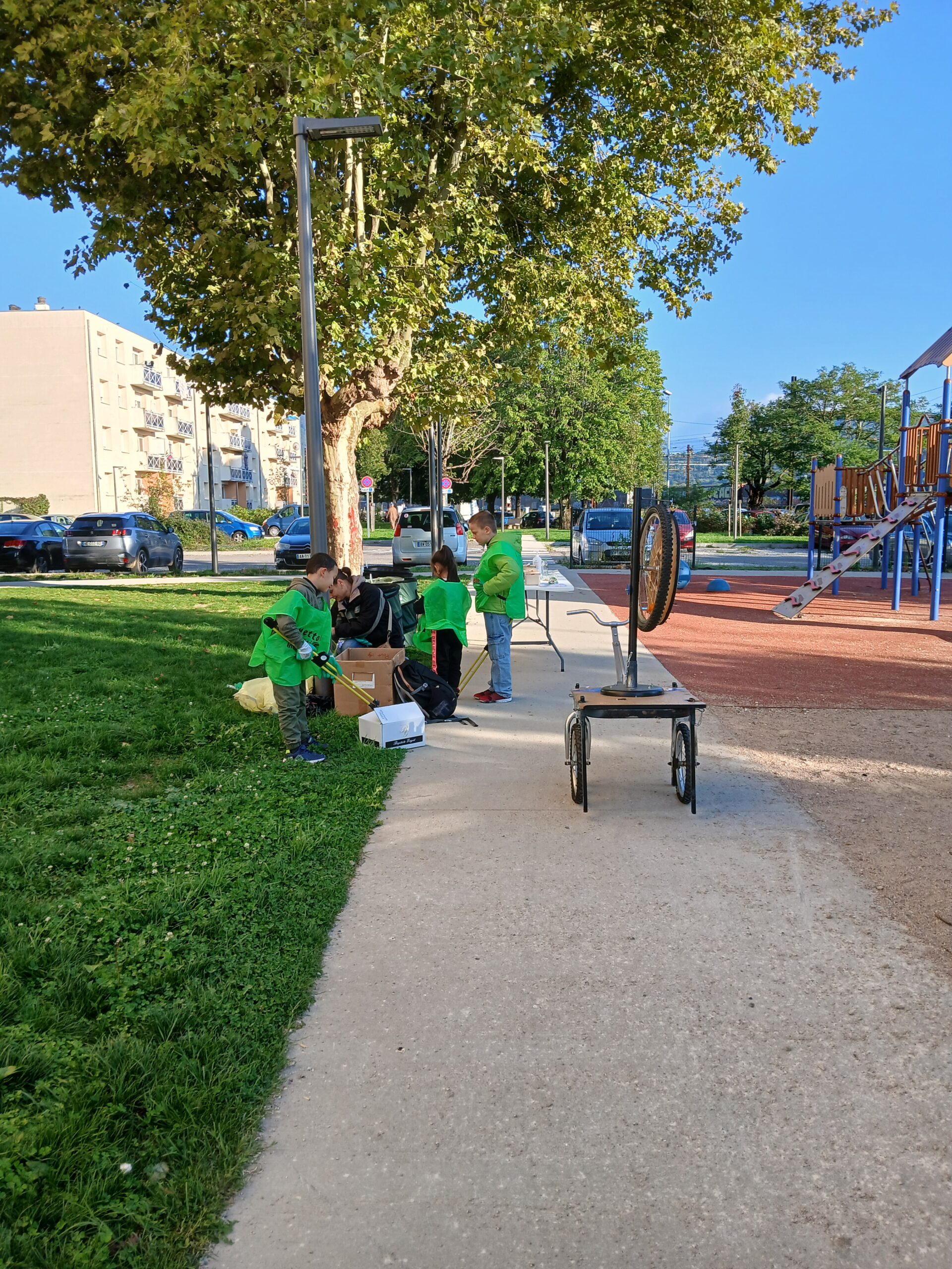 • Actions « Nettoie ton quartier » destinées à consolider les apprentissages sur les gestes de tri par le biais de jeux, mais aussi à respecter son cadre de vie par le nettoyage des espaces proches :
