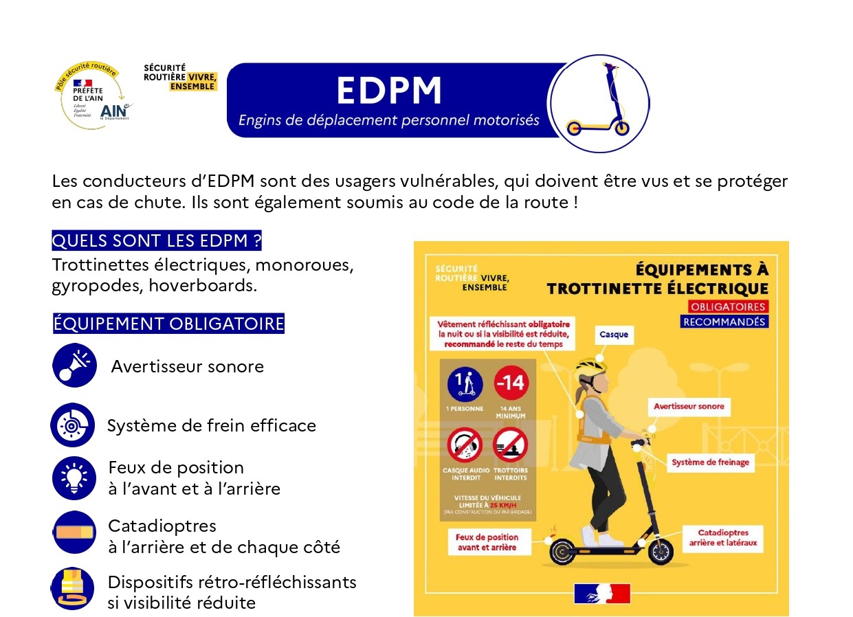 Les engins EDPm regroupent notamment les trottinettes électriques, les draisiennes et les hoverboards. Communiqué de la Direction Départementale des Territoires concernant la sensibilisation des usagers d’EDPm aux règles et aux risques liés à ces nouveaux modes de déplacements ; par conséquent, le pôle sécurité routière Etat-Département multiplie les actions de prévention spécifiques à cette catégorie […]