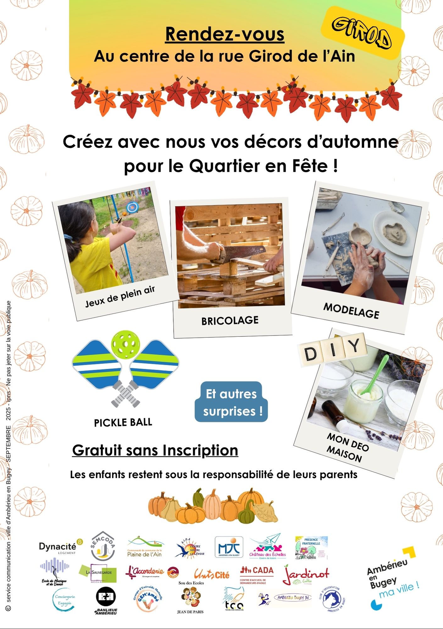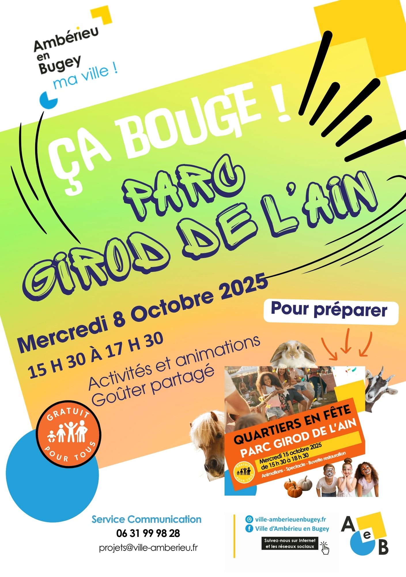 - Mercredi 8 octobre / de 15 h 30 à 17 h 30 / Parc Girod de l’Ain – rue Girod de l’Ain