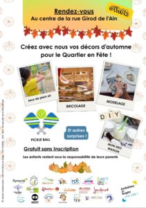 - Mercredi 15 Octobre /15h-19h / Parc Girod de l’Ain – Rue Girod de l’Ain
